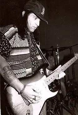 War Babies, featuring the line-up of Brad Sinsel (vocals), Tommy "Gunn" McMullin (guitars), Guy Lacey (guitars), Shawn Trotter (bass), and Richard Stuverud (drums) scored a contract with Columbia Records in 1991. They recorded their debut album, War Babies (1992) at A&M Studios in Hollywood, CA with noted producer, Thom Panunzio and engineer, Bill Kennedy.[2] Their first single and MTV video, "Hang Me Up", was co-written by McMullin and Paul Stanley of Kiss. Two other singles were released, "Blue Tomorrow" (a song dedicated to Andrew Wood, who was a friend of Sinsel and McMullin's), and the power ballad, "Cry Yourself to Sleep", co-written by Sinsel and Stanley.[3] The song "In The Wind" can be heard in the 1992 film Buffy the Vampire Slayer but was not included on the official soundtrack.