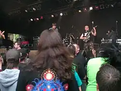 War from a Harlots Mouth recorded and produced their first EP titled Falling Upstairs in cassette format during June 2006 with only 50 physical copies of it released through the independent Berlin-based cassette tape label Yehonala Tapes.[2] The lineup of the EP consisted of Simon Hawemann on guitar and bass, Paule Seidel on drums and Steffen Winopal on vocals.[3] Later on that same year, they released a CD/10" Split with deathcore act Molotov Solution on Twelve Gauge Records.[4] After finding a second guitarist and a bassist in the end of 2006, WFAHM joined the War of Attrition Tour in 2007, promoting the album of the same name by Dying Fetus, accompanying bands Skinless and Cattle Decapitation, also joining the stage for Never Say Die! Fest with bands Ion Dissonance, Dead to Fall, and Through the Eyes of the Dead. Also in 2007, the band joined Lifeforce Records and released their album Transmetropolitan in September.[5]