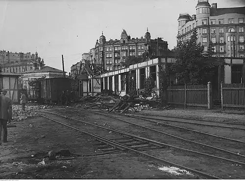 In 1892, next to the Union of Lublin Square, between Puławska and Chocimska Streets, was opened the Warszawa (Warsaw) narrow-gauge railway station. It was a terminal station of two lines operated by the Wilanów Railway, one to leading to Piaseczno, and other to station Warszawa Główna Wąskotorowa in the city centre. In 1898, there was also added a line of the Grójec Commuter Railway, leading to the Nowe Miasto nad Pilicą.[1][2] In 1930, it was renamted to Warszawa (Mokotów), and in 1933, to Warszawa Mokotów, in reference to the nearby town of Mokotów.[3] The station was moved in 1935 further south, to the intersection of Puławska and Odyńca Streets, where it operated until 1938. After that, its role was fulfilled by the Warszawa Południowa station.[4]