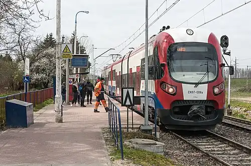 Warszawa Reduta Ordona railway station is a railway station that lies between the Ochota and Wola districts of Warsaw, Poland. It serves the Warszawska Kolej Dojazdowa system and was built in 1974 when Warszawska Kolej Dojazdowa was realigned into the city centre along its present line.