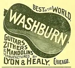 Lyon & Healy began in 1864 as a partnership of businessmen George W. Lyon and Patrick J. Healy, acting as the Chicago outlet for Boston sheet music publisher Oliver Ditson and Company. By 1865, Lyon & Healy had expanded into reed organs and some small instruments. The company achieved independence by 1880, and around 1888 the company launched fully into fretted and plucked instruments (guitars, mandolins, banjos, ukuleles and zithers)[2] under the "George Washburn" brand, which was Lyon's first and middle name.[3] Lyon & Healy 1898 catalog listed 28 different styles of "Washburn" guitars, ranging from $15 to $145.[3]