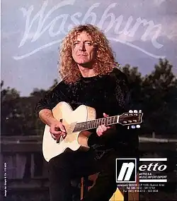 Washburn advertisement featuring Robert Plant, as it appeared in an Argentine music magazine