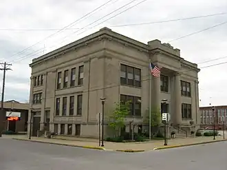 Washington Commercial Historic District is a national historic district located at Washington, Daviess County, Indiana. The district encompasses 88 contributing buildings and 1 contributing object in the central business district of Washington. The district was developed roughly between 1815 and 1940, and includes notable examples of Italianate, Federal, and Classical Revival style architecture. Located in the district is the separately listed Daviess County Courthouse. Other notable buildings include the City Hall (1916), Temple Court (1894), Peoples National Bank (1928), Masonic Building (1868, 1888), Indiana Theater (c. 1925), American Steam Laundry Building (c. 1930), Baltimore and Ohio Passenger Depot (1906), Westminster Presbyterian Church (1911), and U.S. Post Office (1916).[2]