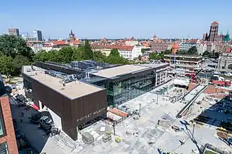 The building was initially scheduled to be completed in 2018, but was first delayed to 2019[8] and then to late 2021 or early 2022[9] before finally being opened on 22 September 2023.[10][11] Features of the building include a bistro, Bistro Miasto; a bookstore; a large interactive scale model of the city of Gdańsk;[12] and a stage for performances.[13]