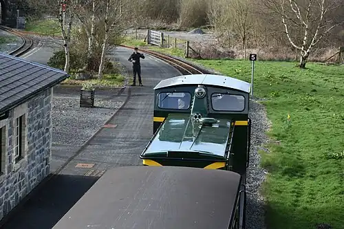 Waunfawr is a station on the narrow gauge Welsh Highland Railway, which was built in 1877 as the North Wales Narrow Gauge Railways Moel Tryfan Undertaking, to carry dressed slate to Dinas Junction on the London and North Western Railway. Passenger services ceased on 26 September 1936 and the station was reopened on 7 August 2000 following the reconstruction of the railway from Dinas to Waunfawr. The train services are operated by the Festiniog Railway Company.