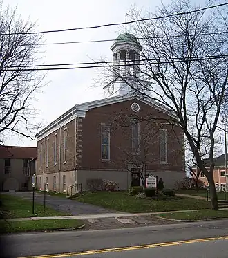 Webster Baptist Church is a historic Baptist church located at Webster in Monroe County, New York. It is a large Greek Revival style cobblestone church building built in 1856. The building features an octagonal open domed belfry supported by eight Ionic columns. It has a veneer of small, rounded and uniform lake-washed cobbles. It is one of only 14 cobblestone church buildings in New York state, and of 106 cobblestone structures in Monroe County.[2] The building was fully renovated in 1965.[3]