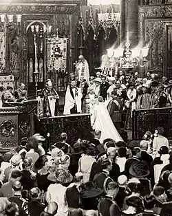 The newly formed British Broadcasting Company had wanted to record and broadcast the event on radio, but the Chapter vetoed the idea (although the Dean, Herbert Edward Ryle, was in favour).[14] Albert's freedom in choosing Elizabeth, not a member of a royal family, though the daughter of a peer, was considered a gesture in favour of political modernisation; previously, princes were expected to marry princesses.[15]