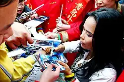 Wei signing autographs after accepting her appointment as Ambassador of Qingdao Olympic Sailing in 2007