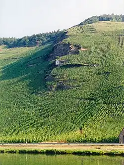 The estate has 14 hectares (35 acres) of holdings in the Wehlener Sonnenuhr, Graacher Himmelreich, Bernkasteler Lay, Bernkasteler Badstube and Zeltinger Sonnenuhr vineyards. Only Riesling is grown and harvested at these sites by Joh. Jos. Prüm.[2] The most important of these sites are Wehlener Sonnenuhr and Graacher Himmelreich, in terms of both quantity and quality for the winery.[1][9] Seventy percent of the vines are ungrafted.[5]