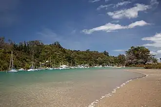 The Weiti River is an estuarine river to the north of Auckland in the North Island of New Zealand. It rises as the Weiti Stream in the low hills approximately 7 kilometres (4 mi) west of Silverdale and emerges into the Hauraki Gulf immediately south of the Whangaparāoa Peninsula. The upper stretches of the river are heavily grown with mangroves but with care, small craft can navigate it as far as Silverdale at high tide. Stillwater is the only other settlement along the river's banks. Wentworth College, based in nearby Gulf Harbour, uses the Weiti River for its rowing training.[1]