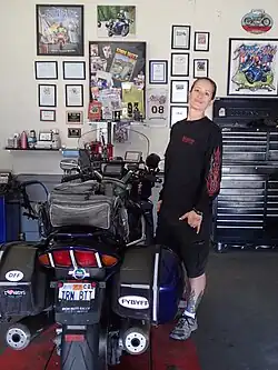 Crockett is a multiple factory-certified motorcycle mechanic, having graduated from the Motorcycle Mechanics Institute in 2001. She owned a motorcycle shop in California for 14 years before relocating to South Dakota.[22] Her writing and photography have appeared in several magazines, including RoadRunner,[23] Sidkar,[24][25][26] Sidecar Traveler,[27] as well as the book "Ride/Write, 2nd Edition".[28] Her photography can also be found on the back cover of "The Women's Guide to Motorcycling" by Lynda Lahman[29] and the front cover of the December 2020 Sidkar Magazine.[24] She has appeared in three movies: "Hard Miles 2",[30] "Like a Woman"[31] and "Women in the Front Seat".[32] She currently works as a motorcycle ride instructor and a motorcycle tour guide;[33] she also conducts workshops on topics such as motorcycle travel and mechanics and speaks about her accomplishments at motorcycle and non-motorcycle-related events.[34][35][36]