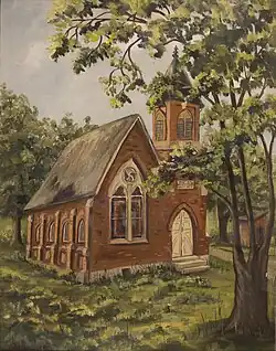 Painting of Wesley Chapel (Hopetown, Ohio) done sometime before the late 1950s when the bell tower was removed due to lightning damage.