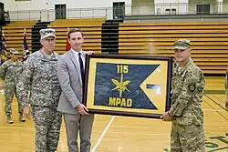 Oregon state and military officials participate in a demobilization ceremony for the 115th Mobile Public Affairs Detachment at West Salem High School, May 5, marking the unit’s return from Afghanistan.”