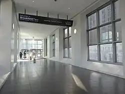 The bridge was finally closed and taken apart on October 7, 2013. At the same time, the crosswalk on the north side of Vesey Street was reopened,[13] The bridge was replaced by the West Concourse of the World Trade Center Transportation Hub, an underground passageway connecting the World Financial Center with the World Trade Center PATH station and to the Fulton Center via the Dey Street Passageway. The temporary bridge was demolished[14] and replaced by a pedestrian crosswalk.[15]