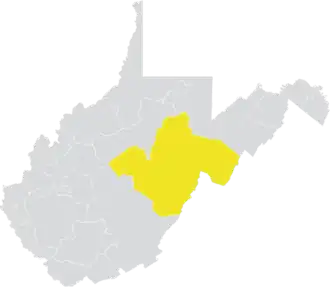 The district overlaps with the state's 1st, 2nd, and 3rd congressional districts, and with the 32nd, 41st, 43rd, 44th, 45th, 46th, 54th, and 55th districts of the West Virginia House of Delegates.[5] It borders the state of Virginia. At over 4,400 square miles, it is by far the largest district in the Senate.[1]
