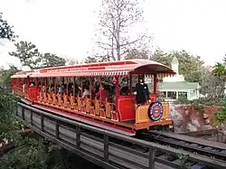 Sponsored by Takara Tomy,[2][3] the Western River Railroad is one of two rail attractions at Tokyo Disney Resort, the other being the DisneySea Electric Railway at Tokyo DisneySea. Unlike other Disney railroad attractions, it does not circle the whole park. Instead, the railroad only passes through Adventureland, Westernland, and Critter Country. Additionally, this railroad has a track gauge is 2 ft 6 in (762 mm) narrow gauge as compared with other Disney railroad track gauges of 3 ft (914 mm) narrow gauge.