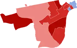 Where a party had more than one candidate in one or both of a pair of successive elections change is calculated for each individual candidate, otherwise change is based on the party vote. Change figures at by-elections are from the preceding general election or the last intervening by-election. Change figures at general elections are from the last general election.