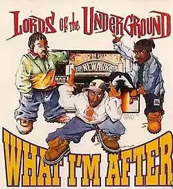 "What I'm After" is the second single released from the Lords of the Underground's second album, Keepers of the Funk. Produced by K-Def, with the group serving as co-producers, "What I'm After" was a minor hit on the rap charts, peaking at 32 on the chart. The song samples Trouble Funk's "Pump Me Up" and fellow New Jersey native Redman's "Tonight's da Night". The promotional music video was directed by Diane Martel, her second Lords of the Underground video after "Chief Rocka", and featured a cameo appearance by Redman.