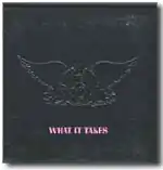 "What It Takes" is a power ballad[4] by American rock band Aerosmith. Written by Steven Tyler, Joe Perry, and Desmond Child,[5] it was released in 1989 as the third single from the critically and commercially successful 1989 album Pump. "I'll put some ballads on an album," Tyler remarked, "if that's what it takes so that some young kid can get to hear a 'Young Lust' or 'F.I.N.E.*'."[6][7]