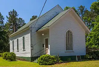 Whitaker's Chapel is a historic chapel in Enfield, Halifax County, North Carolina. The chapel was originally an Anglican chapel, but was later used by Methodists.[2] It was built about 1828, and is a transitional Federal / Greek Revival style frame building. The original section measures 26 feet by 36 feet. It was moved to its present site in 1880–1881, and a vestibule and chancel extension were added sometime after. The chapel was restored in 1965. The adjacent church cemetery was established in the 1850s.[3]