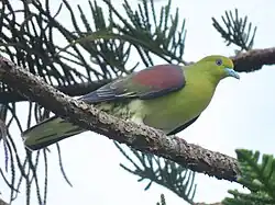 The white-bellied green pigeon (Treron sieboldii) is a species of bird in the family Columbidae. It is found in East Asia, Russian Far East and Southeast Asia.[1] Its natural habitat is temperate forests. Its population has increased significantly since 2000.[2]