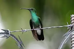 The white-vented plumeleteer (Chalybura buffonii) is a species of hummingbird in the "emeralds", tribe Trochilini of subfamily Trochilinae. It is found in Colombia, Ecuador, Panama, Peru, and Venezuela.[3][4][5]