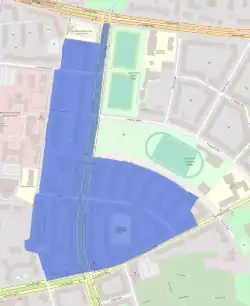 By the end of construction, 1600 apartments had been built at the price of 14DM per square meter. For the first time, a big housing complex would have central heating. For this purpose a block-type thermal power station in the Aroser Allee has been in use since 2012. A kindergarten was built in one of the courtyards along with 20 shops within the housing estate.[1]