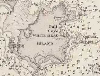 Edward Cheney died January 23, 1835 alongside Nathaniel Bancroft, when their small boat spent an hour crashing upon a rock between Cheney Island and White Head Island.[21] In 1845, the Lighthouse approved £200 for a fog bell on White Head.[22]