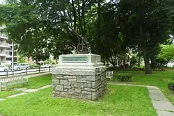 During September and October 1776, troops led by George Washington took up positions in the hills of the village, hotly pursued by the British under General Sir William Howe, who attacked on October 28.[9] The Battle of White Plains took place primarily on Chatterton Hill, (later known as "Battle Hill," and located just west of what was then a swamp but is now the downtown area) and the Bronx River. Howe's force of 4,000–6,000 British and Hessian soldiers required three attacks before the Continentals, numbering about 1,600 under the command of Generals Alexander McDougall and Israel Putnam, retreated, joining Washington's main force, which did not take part in the battle. Howe's forces had suffered 250 casualties, a severe loss, and he made no attempt to pursue the Continentals, whose casualties were about 125 dead and wounded. Three days after the battle, Washington withdrew north of the village, which was then occupied by Howe's forces. But after several inconclusive skirmishes over the next week, Howe withdrew on November 5, leaving White Plains to the Continentals.[9] Ironically, one of Washington's subordinates, Major John Austin, who was probably drunk after having celebrated the enemy's withdrawal, reentered the village with his detachment and proceeded to burn it down. Although he was court-martialed and convicted for this action, he escaped punishment.[9]