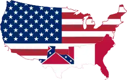 The flag of the Confederate States of America, representing the southern states that separated during the Civil War, is often held up as a symbol of white heritage[34] alongside other historical American flags[35]