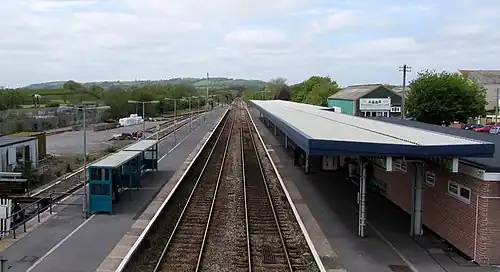 Whitland railway station serves the town of Whitland in Carmarthenshire, Wales. It is located on the West Wales Line from Swansea. To the west of the station, a branch line diverges towards Pembroke; the main line continues to Milford Haven and Fishguard Harbour. The Whitland and Cardigan Railway (closed in 1962) diverged from the Fishguard/Milford Haven line 2 miles (3.2 km) west of Whitland.