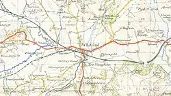 Map from 1952 of the area near Whitland railway station showing the junction between the three lines