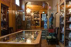 The entire house and all its contents were eventually given as a gift to the Swedish state. The donation had been announced in 1921 but took effect only on the death of the countess in 1930, and the house remained closed to the public until 1938, after the completion of the catalogue of the entire contents of the house. The intention was to document and preserve the whole house exactly as it had been left, both the collections of arts and antiques, and the contemporary furniture, textiles and everyday household objects used by the family and its servants, such as clothing, kitchen utensils and office equipment.[4] In addition to the objets d'art are personal items such as a piece of the Count's beard and a slice of their wedding cake.[5]
