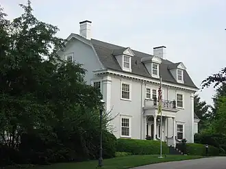 William C. Van Arsdel House, also known as The Elms, is a historic home located at Greencastle, Putnam County, Indiana. It was built in 1907, and is a 2+12-story, Colonial Revival style frame dwelling. A rear addition was constructed in 1928. It has a gambrel roof with three dormers. The house features a balconied entrance portico with Corinthian order columns and corner pilasters.[2]: 2