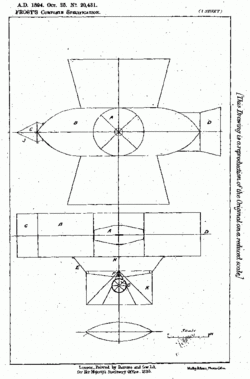 His ambition to invent a flying machine started about 1880.[1] Despite his poverty he constructed the "Frost Airship Glider", which seems, in principle, to have resembled a vertical takeoff airplane, with gas-filled tanks. From the patent description: