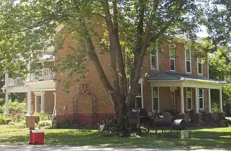 Rochester was established in 1836, making it the first settlement in Cedar County and its first county seat.[2] William Green and his family arrived in May 1837. He bought and operated the sawmill, and became a partner in the county's first brick kiln. He was also involved in local politics. He built this house near the Cedar River in 1853. It is believed it was a stop on the Underground Railroad. Supposedly there was a tunnel between the house and the river bank. There is a "bricked-over doorway in the basement and a cell-like hole under the south portion of the house."[2] John Brown stayed in nearby Springdale where his raid on Harper's Ferry was planned, and there were a number of other houses in the area that were also believed to be stops. A stage coach line between Davenport and Iowa City passed through Rochester and the house was an overnight stop for stage passengers after the Rochester Bridge was completed in 1880.