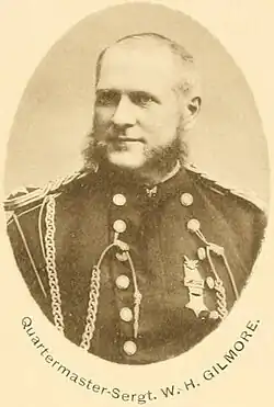 In 1861 Gilmore joined Company D, 8th Vermont Volunteer Infantry Regiment.[note 1] Enlisting as a private, he served until being mustered out in 1864, and rose in rank to become the regiment's supply sergeant. On several occasions he was commended for sustaining the regiment in battle by arranging for the timely acquisition and distribution of food, ammunition and equipment.[3][4]