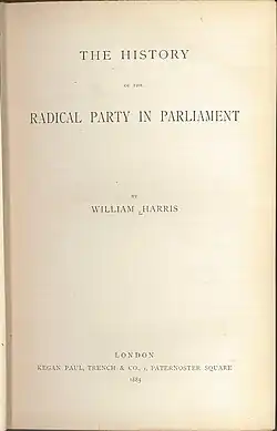 Title page of Harris's History of the Radical Party in Parliament (1885)