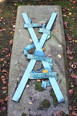 • Lord Arthur Vincent Hay (1886–1914), who was killed in action in the First World War during the First Battle of the Aisne.[11] The inscription on his gravestone in France reads: "IN SUCH A DEATH THERE IS NO STING IN SUCH A GRAVE EVERLASTING VICTORY. (MOTHER)".[11] He married Menda Ralli, only daughter of Ambrose Ralli, in 1911.[12] After his death, she married Col. Robert Edward Kennard Leatham.[2]