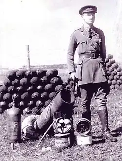 William Howard Livens, DSO, MC (28 March 1889 – 1 February 1964[5][6]) was an engineer, a soldier in the British Army and an inventor particularly known for the design of chemical warfare and flame warfare weapons. Resourceful and clever, Livens' successful creations were characterised by being very practical and easy to produce in large numbers. In an obituary, Sir Harold Hartley said "Livens combined great energy and enterprise with a flair for seeing simple solutions and inventive genius."[7]