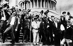 Tierney (center, white suit) is greeted by members of the Bonus Army, 1932