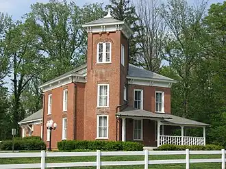 William M. Cockrum House, also known as Cockrum Hall, is a historic home located at Oakland City, Gibson County, Indiana. It was built in 1876, and is a two-story, Italian Villa style brick dwelling with a one-story wing. It features a three-story square corner tower set at a 45-degree angle, round and segmental arched windows, and bracketed cornice.[2]: 2