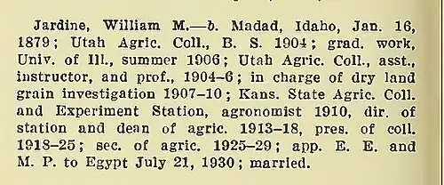 5. ^ "Papers of William Jardine as Secretary of Agriculture, Diplomat and University of Wichita President, Call Number: MS 73-07".