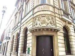 • Lloyd’s Bank, 202 High Street/ St Benedicts Square. 1901-3.[24] Stone facade. The building originally had a cupola, Described in Pevsner as ‘‘Dehydrated Georgian Baroque’’- it is actually quite good and more Classical than normal Edwardian Baroque Revival architecture.[25]