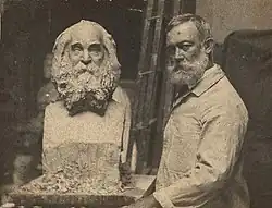 William Rudolf O'Donovan and his bust of Walt Whitman (May 1891). Photograph by Thomas Eakins.[1]