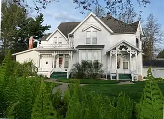 It is a two-story frame house. It is designed in a Victorian Gothic/Queen Anne style "with a hip and gable roof and scroll-like modillions ornamenting the cornice."[2]