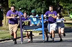 Wilmington College Greek life participates yearly in Greek Bed Races at Homecoming.