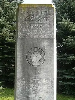 Socialist combined memorial for the 1525 German Peasants' War and the 1945 German Land Reform in Osterhausen, Saxony-Anhalt. The inscription "Die Enkel fochten's besser aus" refers to this song.