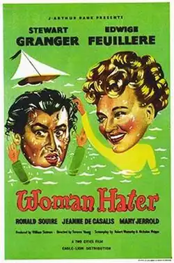 Woman Hater is a 1948 British romantic comedy film directed by Terence Young and starring Stewart Granger, Edwige Feuillère and Ronald Squire.[1][2] The screenplay was by Nicholas Phipps and Robert Westerby and concerns Lord Datchett, who, as a consequence of a bet with his friends, invites a French film star to stay at his house but pretends to be one of his employees while he tries to romance her with the help of his butler. When she discovers his subterfuge, she decides to turn the tables on him.[3]