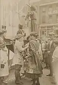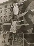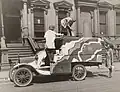 The women initially focused their efforts on creating apparel for gunners, scouts, and snipers that made them blend in with the landscape's trees or rocks.[5] Weekly field trips to Westchester County and parks such as Van Cortlandt Park and Kykuit, the Rockefeller family estate,[9] served as testing grounds for the women to try out their designs, trying to see if they could fool passerby or if their photographs showed they had succeeded in making people disappear from view.[4] They eventually moved from clothing to painting dazzle camouflage on ambulances, ships and tanks.[4][10] Units formed in various places throughout the United States, including Iowa, Minnesota, North and South Dakota,[11] and Philadelphia.[8]